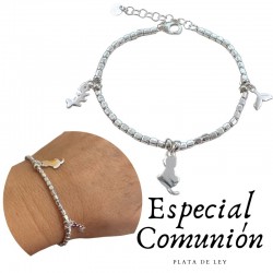 PULSERA PLATA DE LEY GATITO, RASPA PEZ Y COLA PEZ: 17 CM+3 CM CADENA ALARGADORA