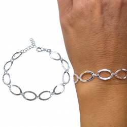 PULSERA PLATA DE LEY ESLABÓN OVALADO HUECO DE 1 CM ANCHO X 1.5 CM LARGO. LONGITUD: 18 CM + 3 CM CADENA ALARGADORA