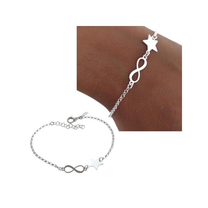 PULSERA PLATA DE LEY INFINITO ESTRELLA CADENA ROLO