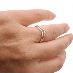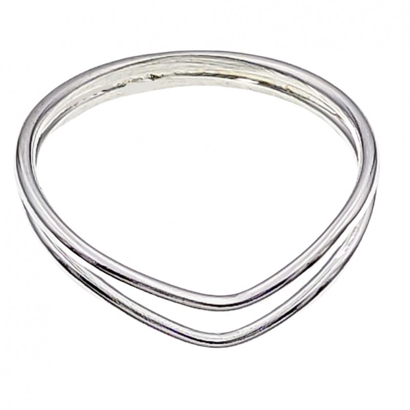 Anillo fabricado en plata de ley 925 mm, con doble hilo de plata y pico delantero.