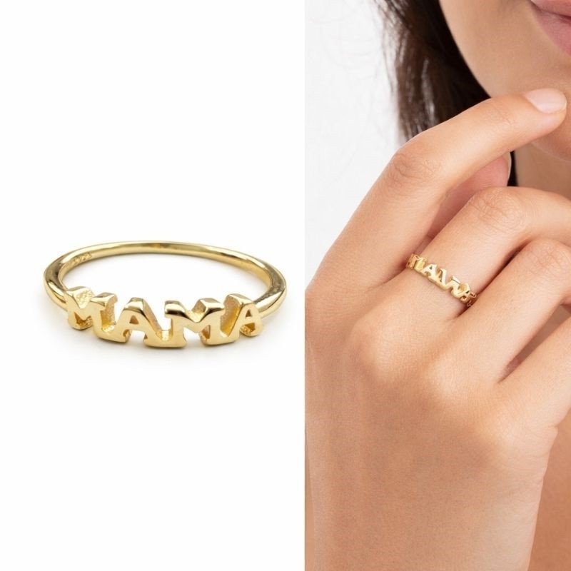 Anillo de plata de ley banado en oro 18k con detalle mama central diseno emotivo y elegante disponible en varias tallas ideal para regalar en ocasiones especiales entregas rapidas en 24 72 horas laborables en peninsula envio gratis desde 20 euros resto de pedidos 3 euros incluye estuche de regalo