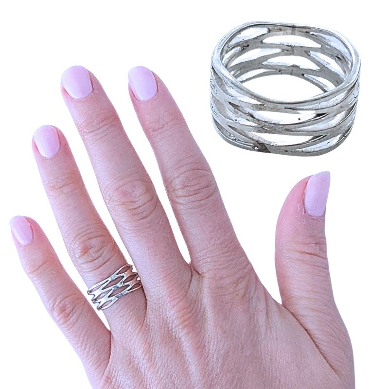 Anillo de plata de ley con lineas entrelazadas de forma ondulada, elegante y moderno para cualquier look. Entregas rapidas en 24 a 72 horas laborables en peninsula. Se entrega en estuche de regalo. Envios gratis desde 20 euros y resto de pedidos por 3 euros. Ideal para regalar y brillar.