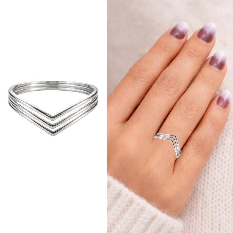 Anillo de plata de ley liso con diseño en pico formado por tres hilos un estilo moderno elegante y llamativo perfecto para cualquier ocasion Entregas rapidas en 24 a 72 horas laborables a peninsula se entrega en estuche de regalo envio gratis desde 20 euros resto de pedidos 3 euros