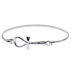 Pulsera fabricada en plata de ley 925 mm, rígida, con motivo central en forma de cruz de la vida.