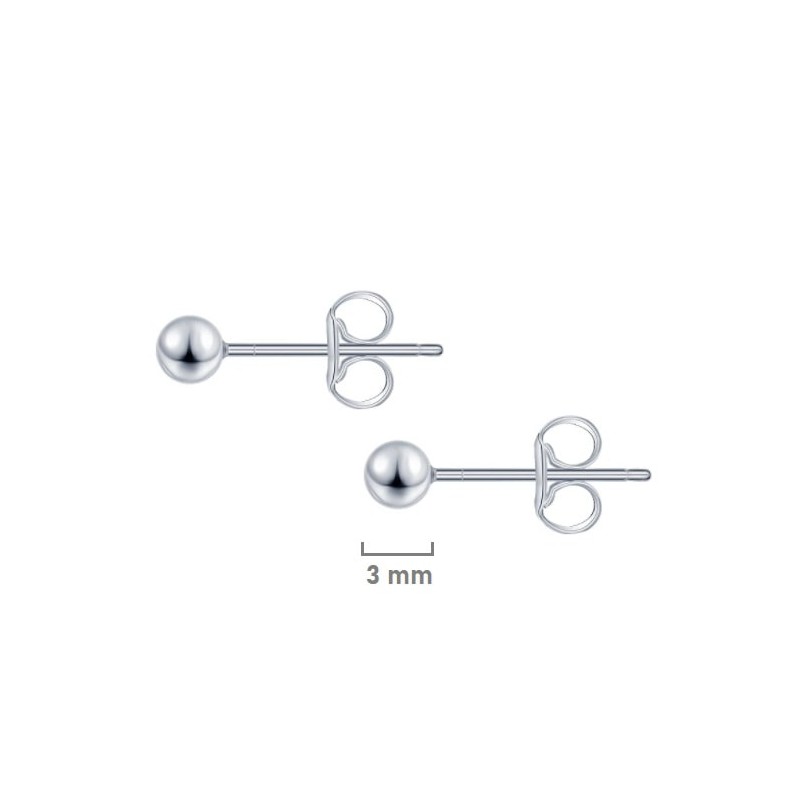 Pendientes fabricados en plata de ley 925 mm, en forma de bola de 3 mm de diámetro, con cierre de presión tipo mariposa. Ideales para un segundo o tercer agujero. Se entregan en estuche de regalo. Envíos rápidos en 24-48 horas laborables a península.