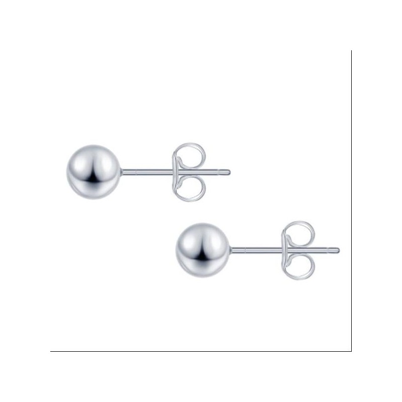 Pendientes fabricados en plata de ley 925 mm, en forma de bola de 5 mm de diámetro, con cierre de presión tipo mariposa. El precio indicado es de una pareja. Se entregan en estuche de regalo.