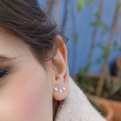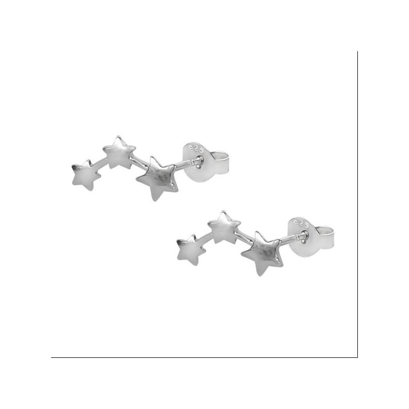 Pendientes fabricados en plata de ley 925 mm, con tres estrellas y cierre de presión tipo mariposa. El precio indicado es de una pareja. Se entregan en estuche de regalo.