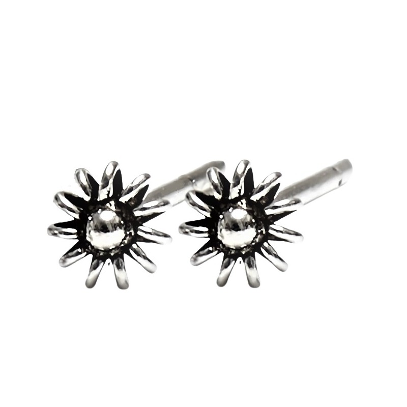 Pendientes fabricados en plata de ley 925 mm, en forma de flor, con cierre de presión tipo mariposa, para mayor comodidad en su colocación. Por su tamaño reducido ( 3 mm) son ideales para un segundo agujero. El precio indicado es de una pareja. Se entregan en estuche de regalo.