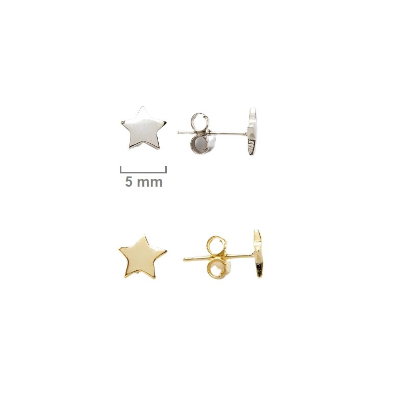 PENDIENTES PLATA DE LEY ESTRELLAS 5 MM A ELEGIR PLATA O BAÑADO ORO 18K
