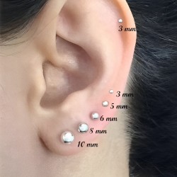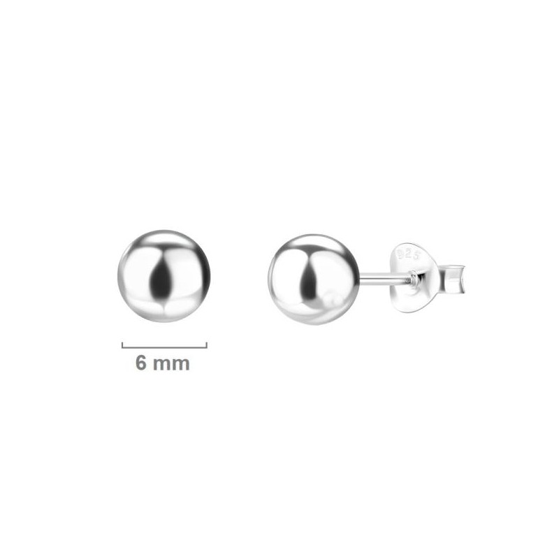 Pendientes fabricados en plata de ley 925 mm, en forma de bola de 6 mm de diámetro, con cierre de presión tipo mariposa. El precio indicado corresponde a una pareja. Se entregan en estuche de regalo. Envíos rápidos en 24-48 horas laborales en península.