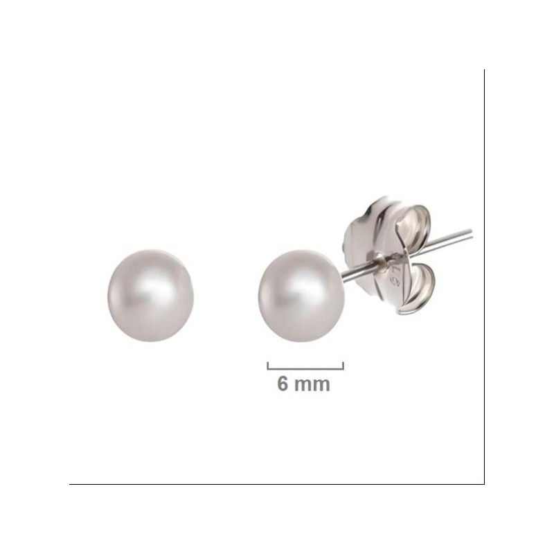 Pendientes fabricados en plata de ley 925 mm y perla sintética de 6 mm de diámetro, con cierre de presión tipo mariposa. El precio indicado corresponde a una pareja. Se entregan en estuche de regalo. Envíos rápidos en 24-48 horas laborables a península.