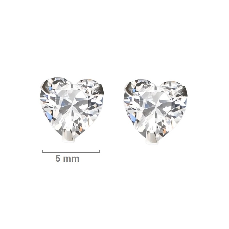 PENDIENTES PLATA DE LEY CIRCONITA CORAZÓN 5 MM CIERRE PRESIÓN TIPO MARIPOSA