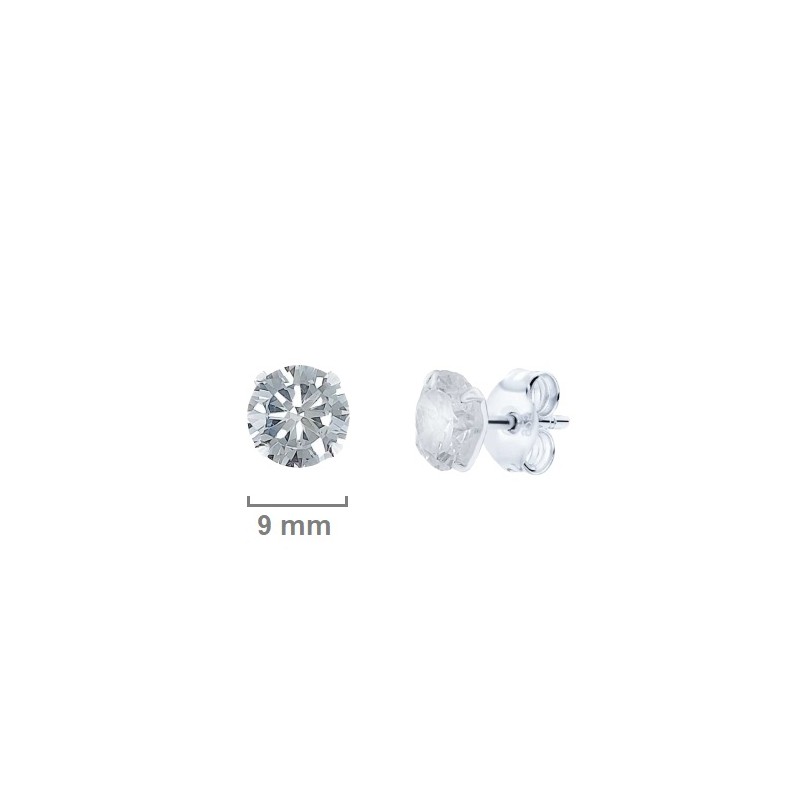 Pendiente fabricado en plata de ley 925 milésimas con cierre de presión tipo mariposa y circonita redonda de 9 mm de diámetro. Se entrega en estuche de regalo. Envíos rápidos en 24-72 horas laborables a península.