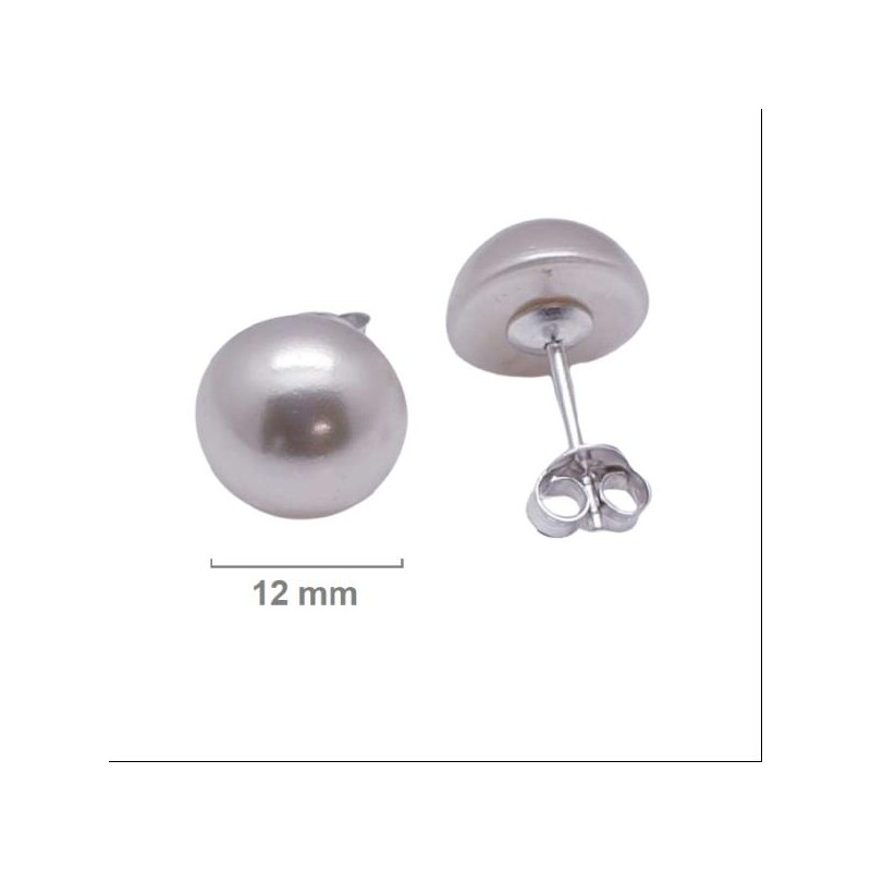 PENDIENTES PLATA DE LEY MEDIA PERLA ACRÍLICA 12 MM
