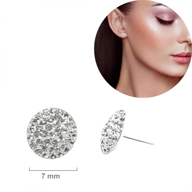 PENDIENTES PLATA DE LEY MICRO CRISTALES STRASS 7 MM DIÁMETRO CIERRE PRESIÓN