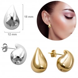 Pendientes fabricados en plata de ley 925 mm, en forma de gota, de 18 mm de alto y 12 mm deancho. Cuentan con un cierre de presión tipo mariposa. Disponibles en dos acabados diferentes a elegir en el momento de la compra: plata o plata bañado en oro de 18k. Se entrega en estuche de regalo. Entregas rápidas en 24-72 horas laborables a península.