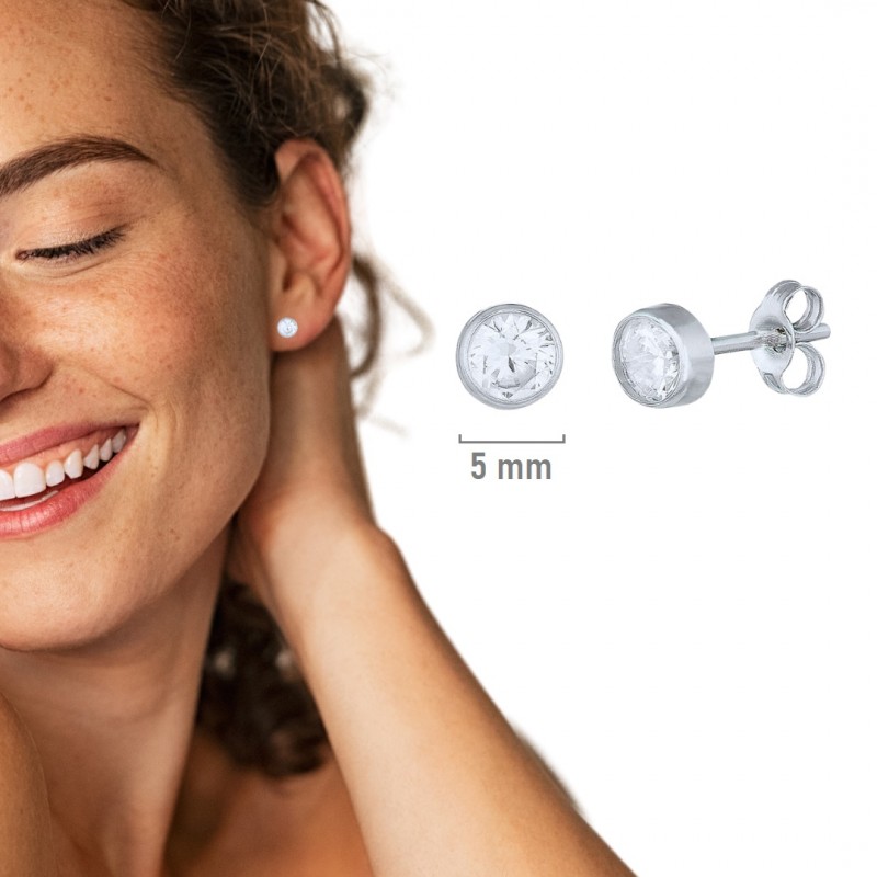 Pendientes fabricados en plata de ley 925 mm, con montura Rusa o también llamados chatón, de 5 mm de diámetro. Ideales como segundos pendientes. Se entrega en estuche de regalo. Entregas rápidas en 24-72 horas laborables a península.