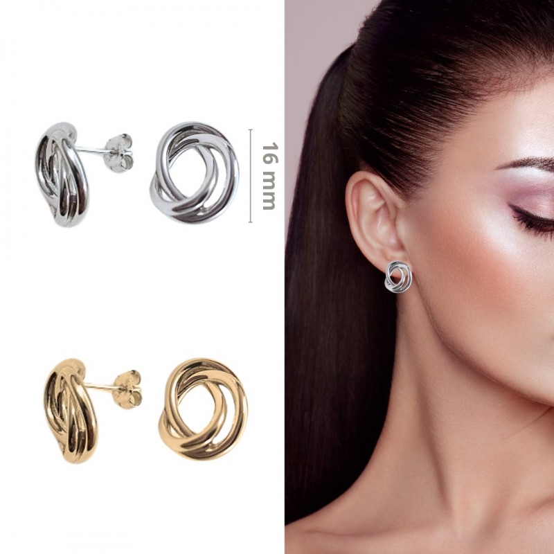 PENDIENTES PLATA DE LEY NUDO DE 16 MM DE ALTURA, CON CIERRE DE PRESIÓN, DOS ACABADOS: BAÑADO EN RODIO O BAÑADO EN ORO DE 18K