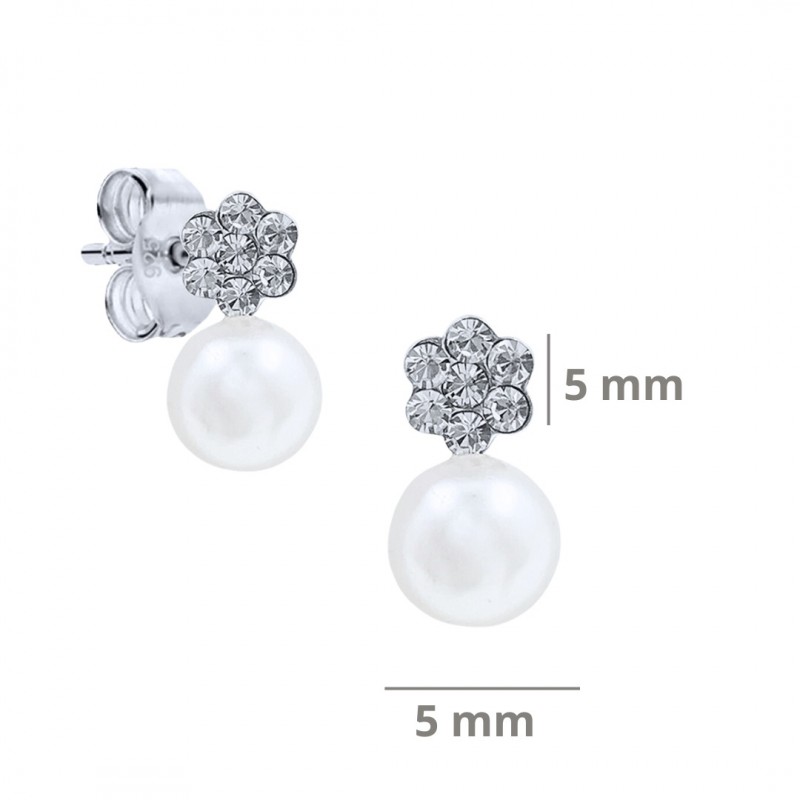 PENDIENTES PLATA DE LEY TU Y YO, FLOR SUPERIOR CIRCONITAS 5 MM Y PERLA INFERIOR 5 MM, CIERRE PRESIÓN