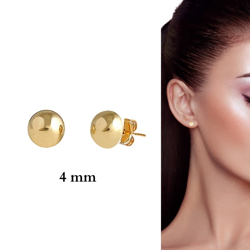 PENDIENTES PLATA DE LEY BAÑADOS ORO 18K MEDIA BOLA 4 MM DE DIÁMETRO CIERRE DE PRESIÓN