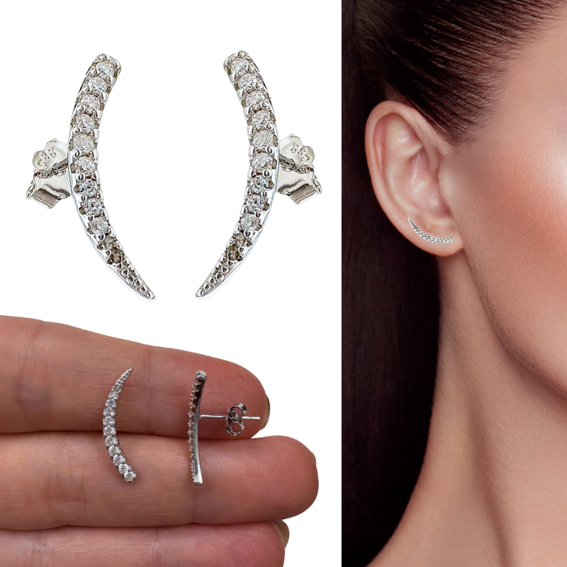 PENDIENTES PLATA DE LEY EN FORMA DE TREPADOR FORMADO POR CIRCONITAS DE MAYOR A MENOR, CON CIERRE DE PRESIÓN CENTRADO