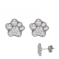 Pendientes de plata de ley con forma de huella de perro, decorados con circonitas blancas que aportan brillo y ternura. Cierre de presión para mayor comodidad y seguridad. Un regalo perfecto para amantes de los animales. Entregas rápidas en 24 a 72 horas laborables a península. Envío gratis desde 20 euros. Se entregan en estuche de regalo.
