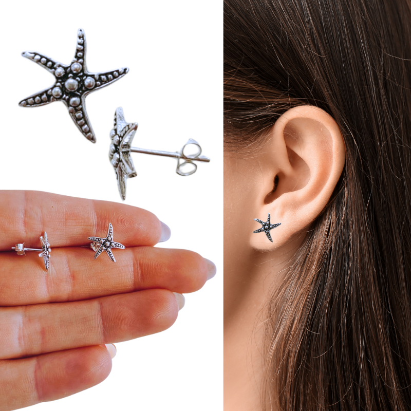 PENDIENTE PLATA ESTRELLA DE MAR 13MM CIERRE PRESION