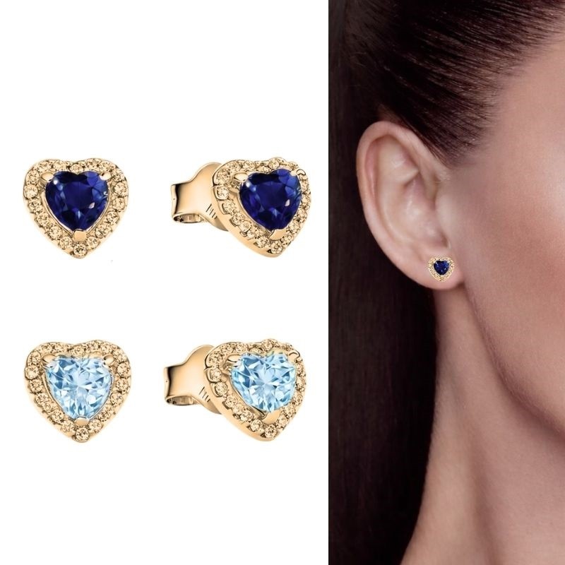 Pendientes de plata de ley bano oro 18K con diseno de corazon y circonita central en tono azul o celeste perfectos para aportar brillo y estilo a cualquier look Entregas rapidas en 24 72 horas laborables a peninsula se entregan en estuche de regalo envios gratis desde 20 euros resto 3 euros