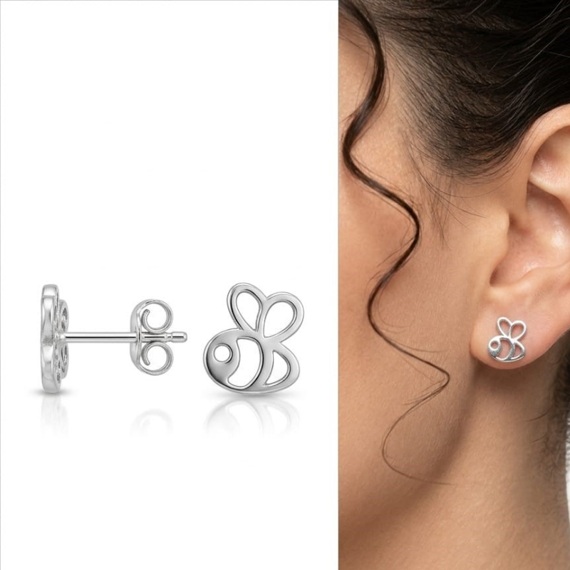Pendiente de plata de ley con diseño de abeja y cierre de presion. Joya delicada y original ideal para uso diario o regalo especial. Entregas rapidas en 24/72 horas laborables a peninsula. Se entrega en estuche de regalo. Envio gratis en compras superiores a 20 euros resto 3 euros
