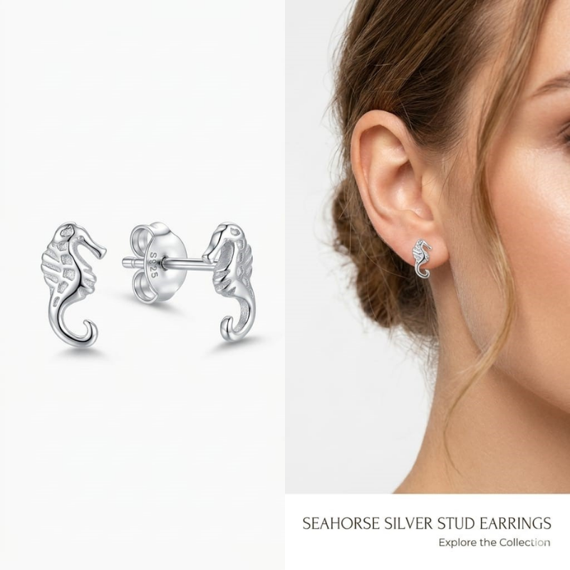 Pendiente de plata de ley con diseño de caballito de mar y cierre de presion. Joya original y elegante ideal para uso diario o regalo especial. Entregas rapidas en 24/72 horas laborables a peninsula. Se entrega en estuche de regalo. Envio gratis en compras superiores a 20 euros resto 3 euros