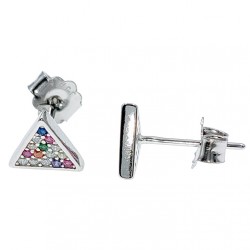 Pendientes fabricados en plata de ley 925 mm, en forma de triángulo con cierre de presión, y circonitas de colores. Tamaño del pendiente: 8 mm de lado.