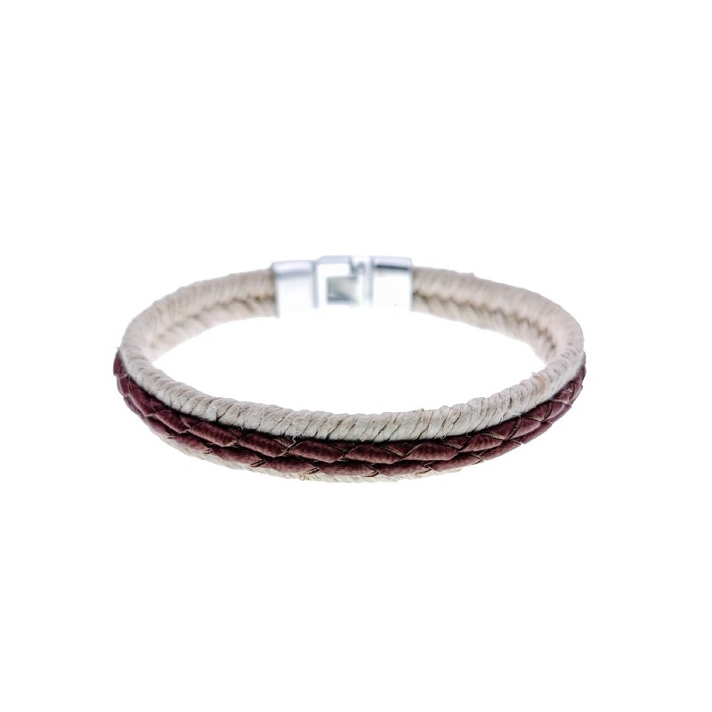 Pulsera fabricada en cuero marrón, esparto y zamak. Longitud: 22 cms.