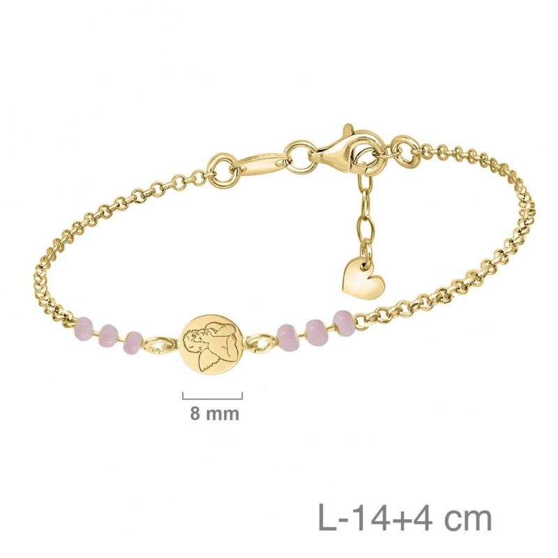 ESPECIAL COMUNIÓN: PULSERA PLATA DE LEY BAÑADA ORO 18K ANGELOTE Y PERLAS ROSAS