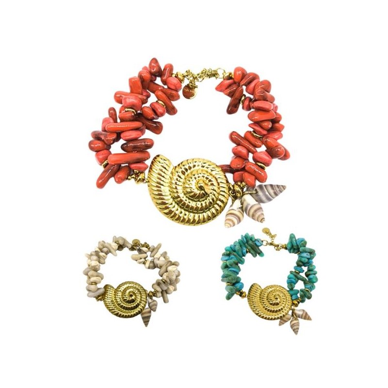 Descubre nuestra Pulsera de Acero Inoxidable con baño de oro de 18K, disponible con corales, turquesa o nácar y con una hermosa concha central. Un accesorio elegante y único, perfecto para cualquier ocasión. Recibe tu pedido en 24-72 horas laborables a península, con estuche de regalo. Además, disfruta de envíos gratis en compras superiores a 20€.