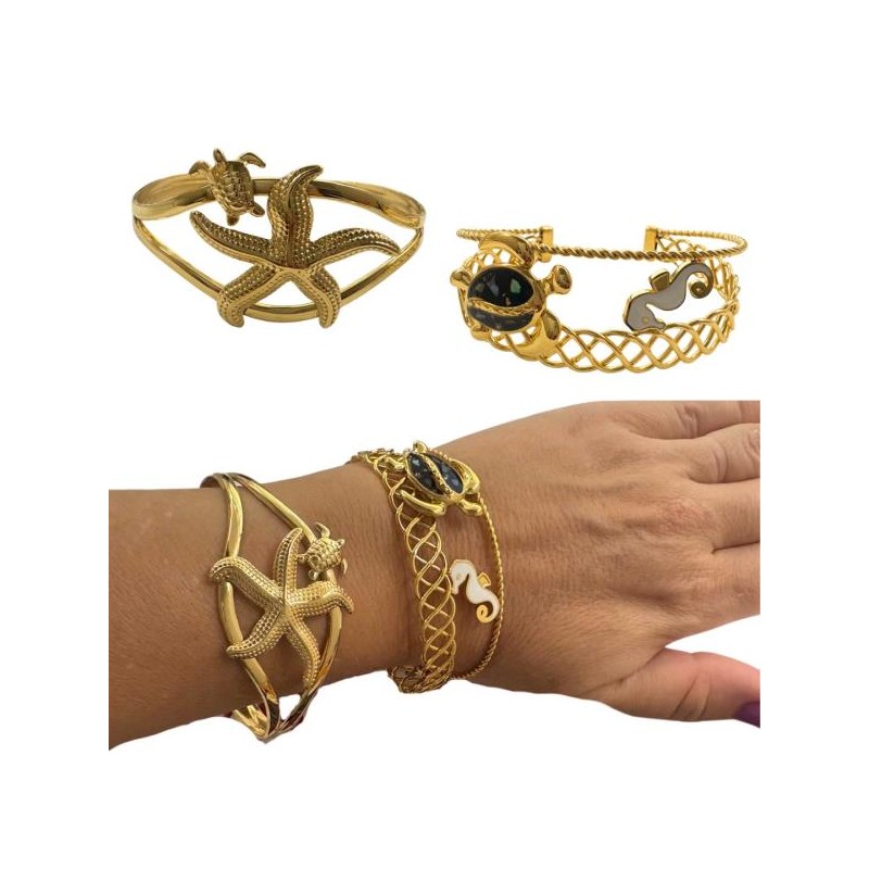 PULSERA ACERO INOXIDABLE BAÑADA ORO 18K, ABIERTA, DOS DISEÑOS DIFERENTES A ELEGIR: ESTRELLA DE MAR O CABALLITO DE MAR