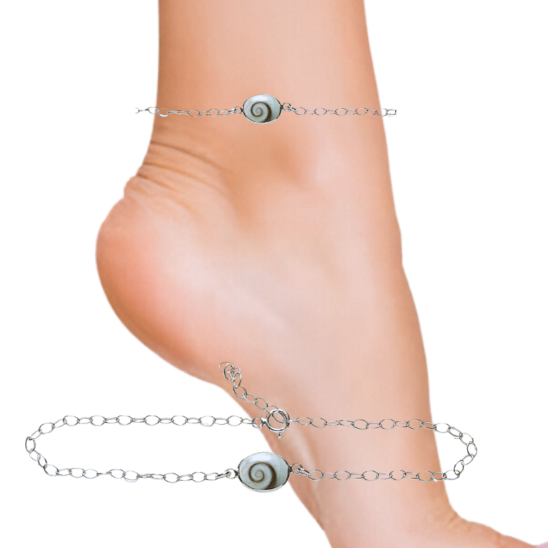 TOBILLERA PLATA DE LEY OJO DE SHIVA DE 9 MM X 18 MM, LONGITUD 21 CM + 5 CMS CADENA ALARGADORA