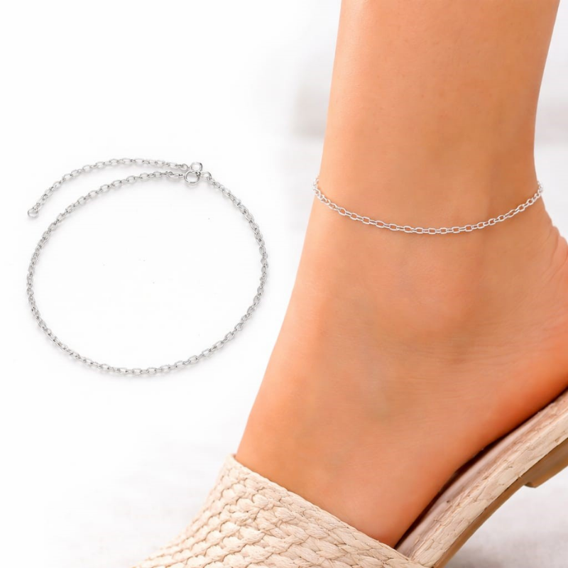 Elegante tobillera de plata de ley basica con eslabones ovalados y diseño atemporal. Mide 21 cm con 5 cm de extension para un ajuste comodo y seguro. Ideal para uso diario o regalo. Entregas rapidas en 24 a 72 horas laborables a peninsula, en estuche regalo. Envios gratis desde 20 euros, resto 3 euros.
