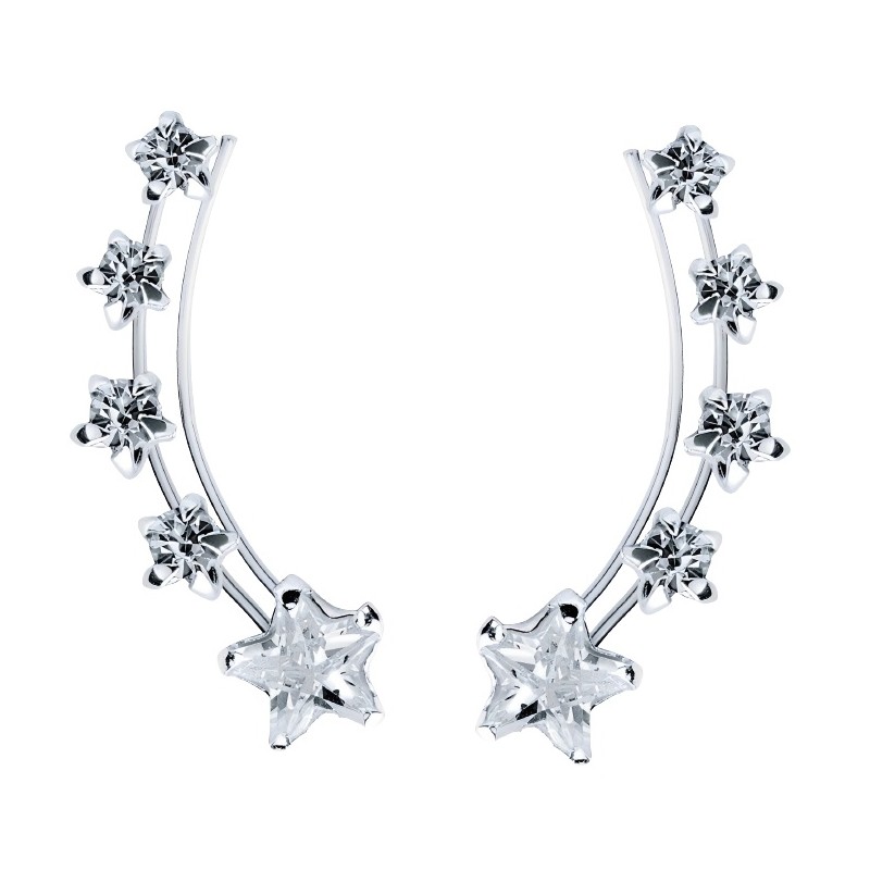 Pendientes fabricados en plata de ley 925 mm, en forma de trepadores, formado por estrellas de circonitas blancas sujetas por garras. El precio indicado corresponde a una pareja. Se entregan en estuche de regalo. Envíos rápidos en 24-48 horas laborales a península.