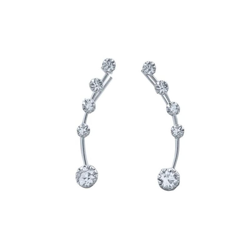 PENDIENTES PLATA DE LEY TREPADORES 5 CIRCONITAS BLANCAS REDONAS DE MAYOR A MENOR